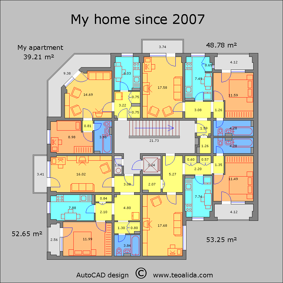 Plan of my current block (I am the lucky owner of the corner apartment, 2-room apartments with 270 degree view are RARE)